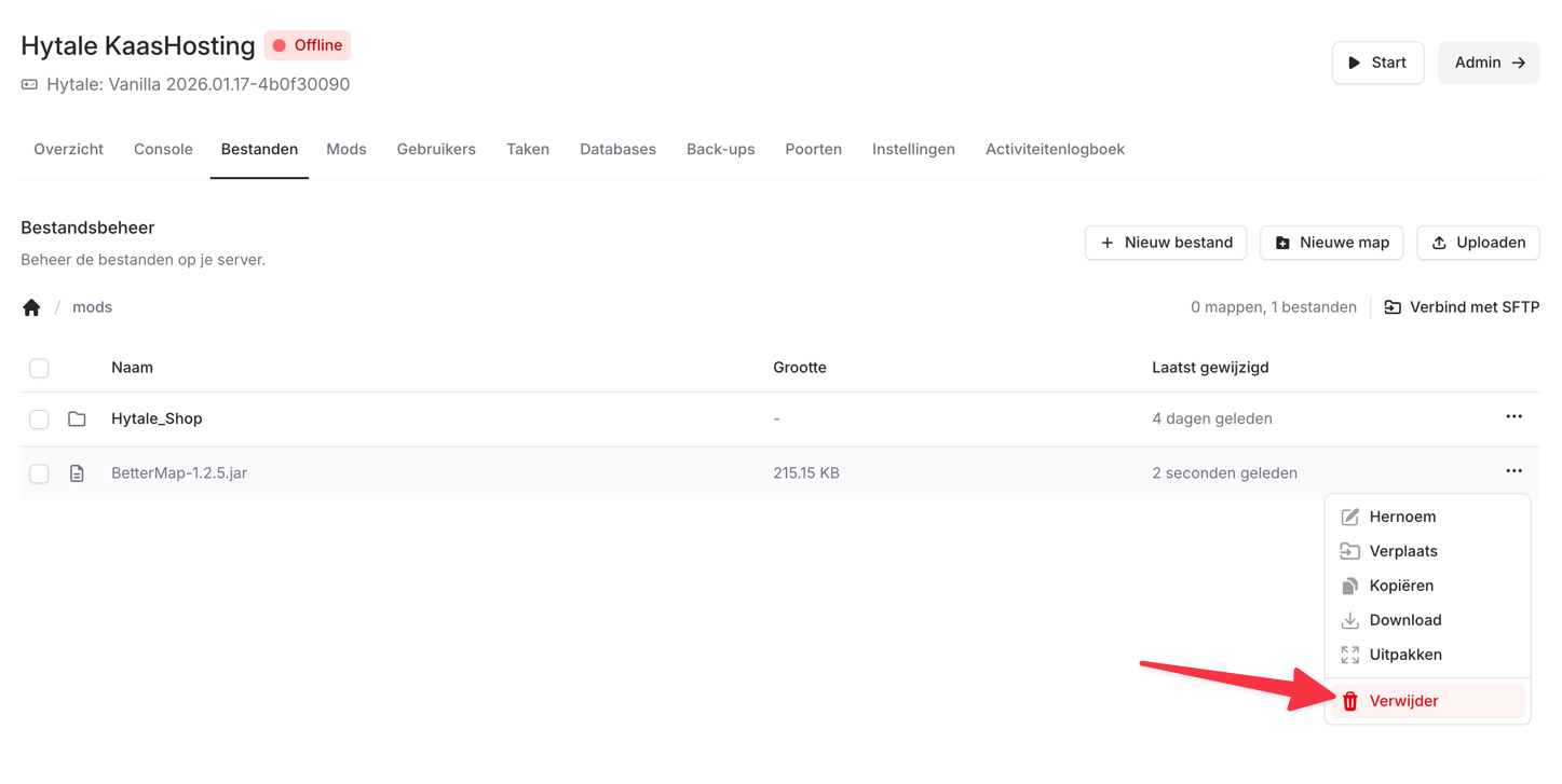 Zet je server altijd uit voordat je mods installeert of verwijdert.