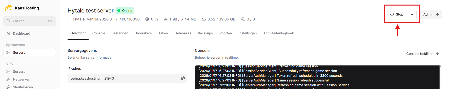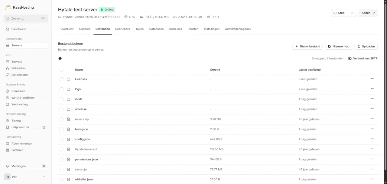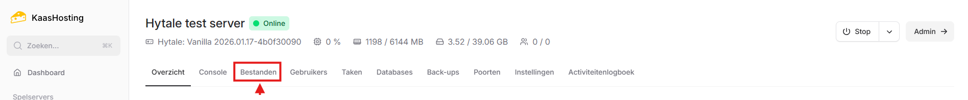 Ga naar het controlepaneel en klik op de Hytale server waar je PvP wilt aanzetten.