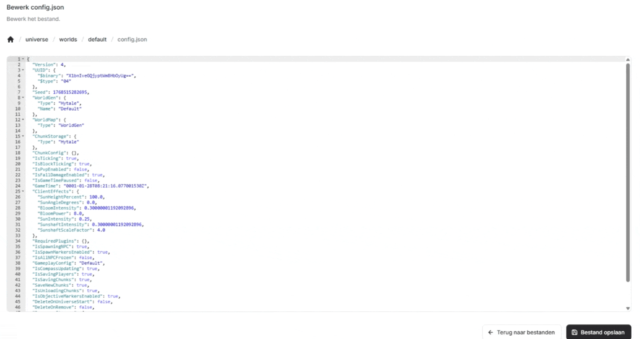 Sla het bestand op en start je server.