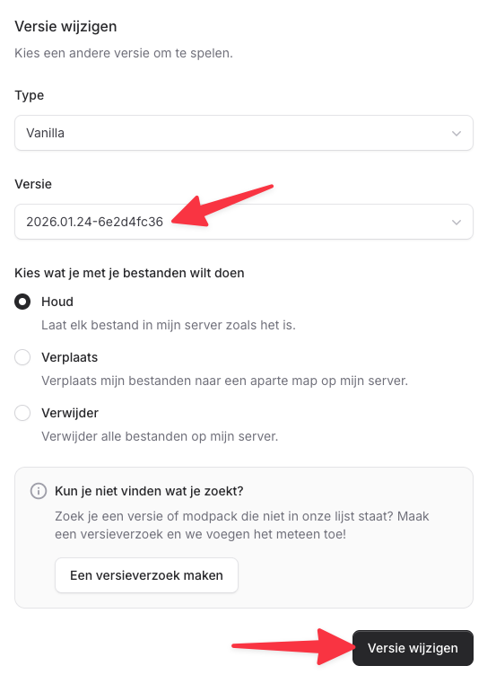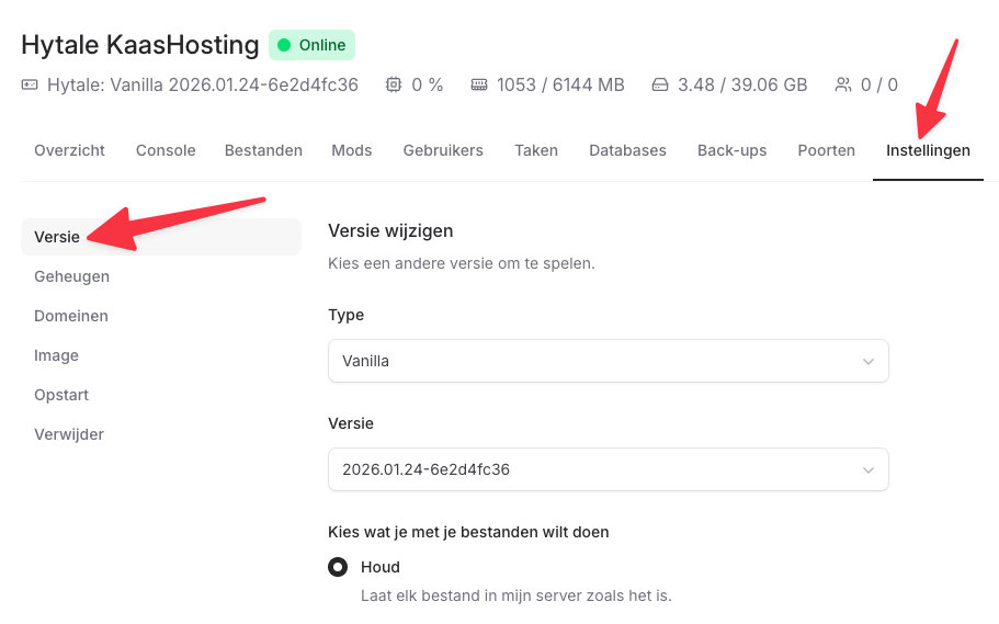 Houd: laat elk bestand in je server zoals het is. Dit is de beste keuze als je je wereld en instellingen wilt behouden.