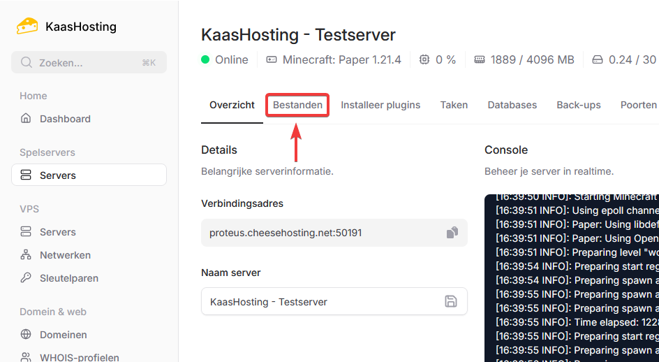 Ga naar het controlepaneel en klik op de server waarop je jouw jar bestand wil gebruiken.