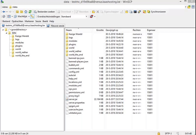 Om de wereld te uploaden gebruiken we SFTP. Weet je nog niet hoe dit werkt? Zie hiervoor onze SFTP tutorial.
