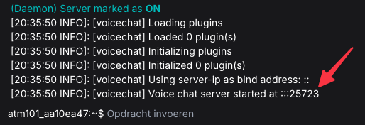 Start je server weer op. Tijdens het opstarten zal de mod/plugin de nieuwe poort gebruiken voor de voice chat.