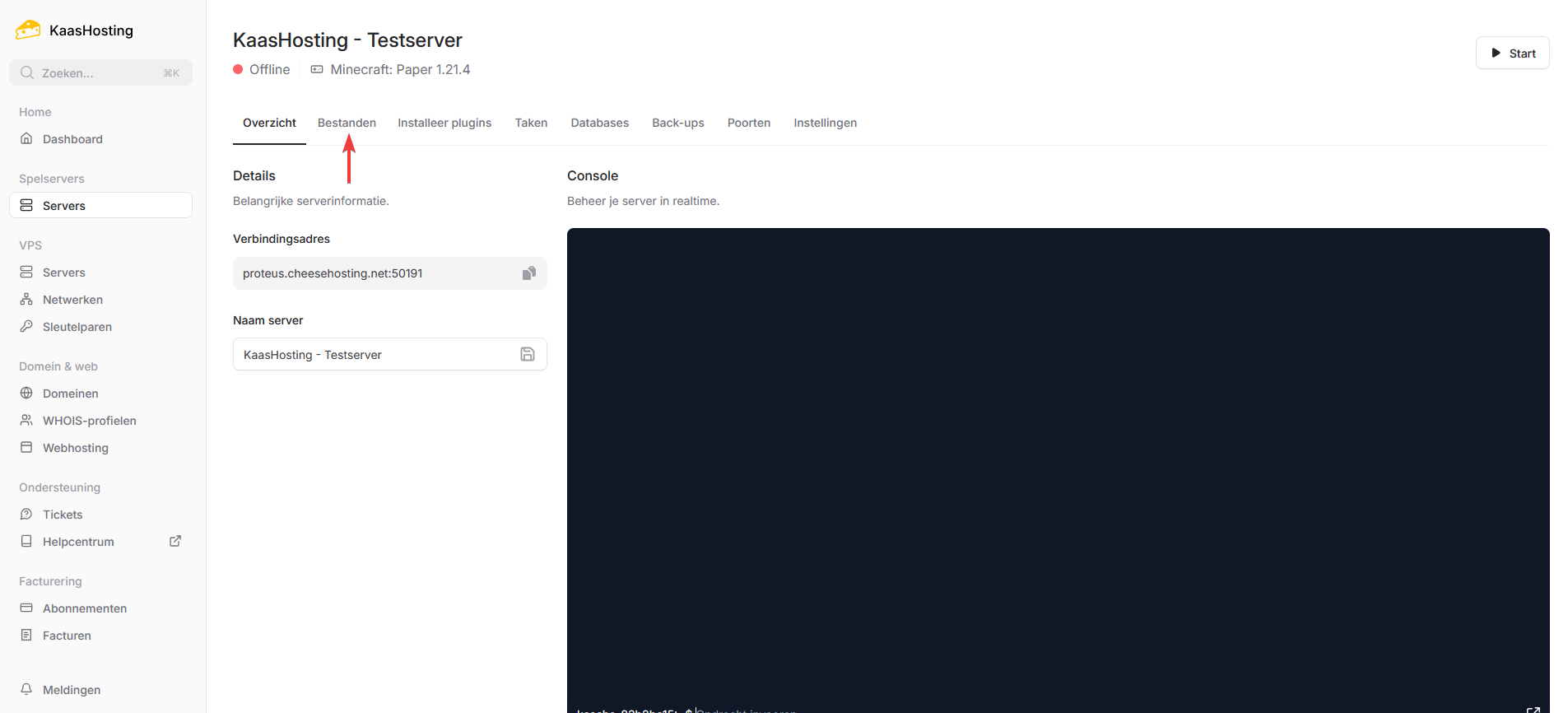 Ga naar het controlepaneel en klik op de server die je wilt koppelen.