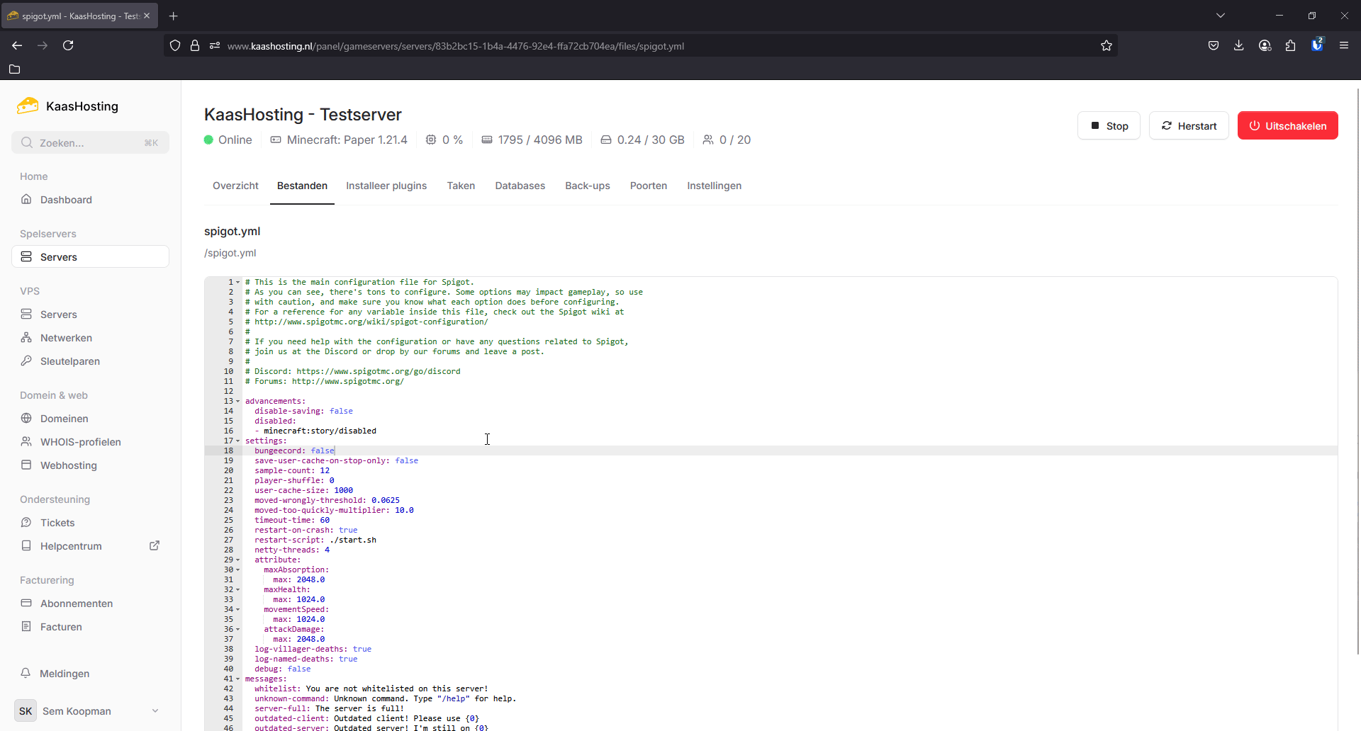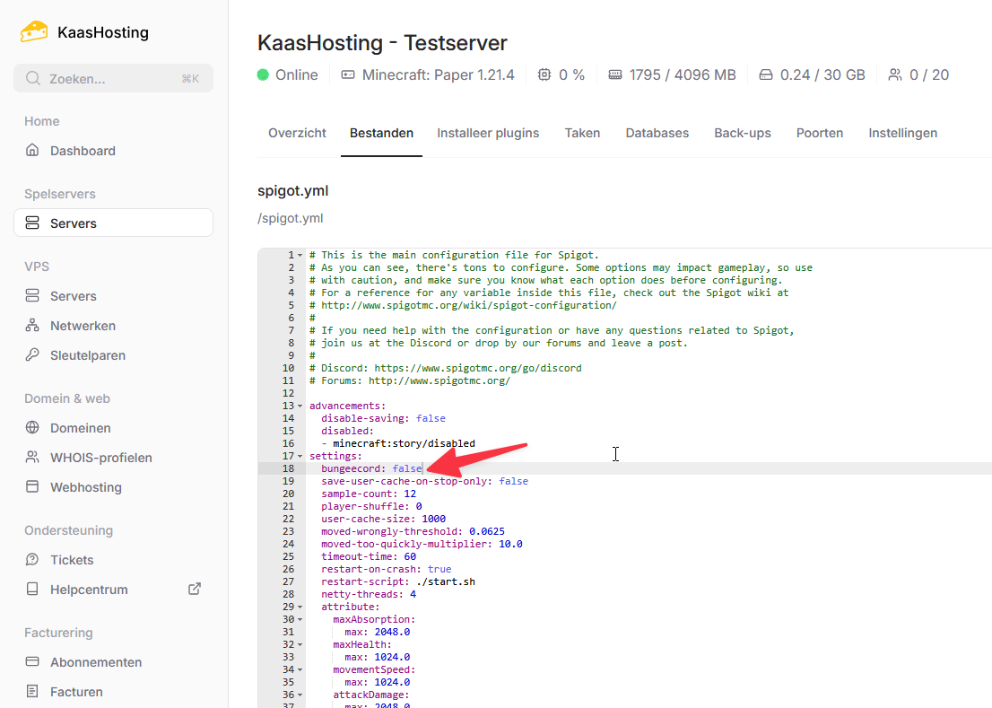 De volgende stappen herhaal je voor elke server die je aan BungeeCord wilt koppelen. Dit doe je dus niet op de BungeeCord server zelf, maar op de Spigot/Paper servers.