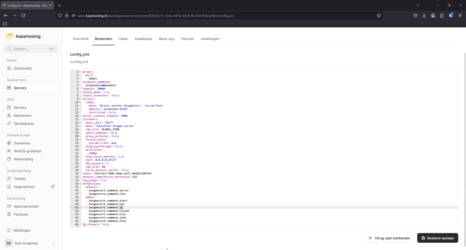 config.yml. Hierin staan alle BungeeCord instellingen.