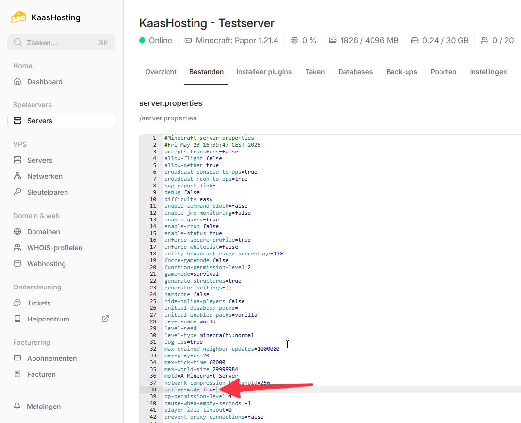 mc.kaashosting.nl:25566)motd: de omschrijving die intern wordt getoond