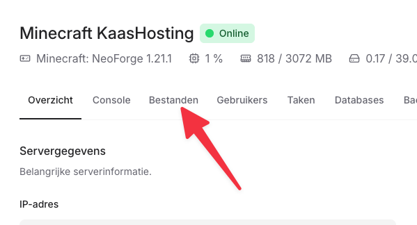 Ga in het controlepaneel naar je server.