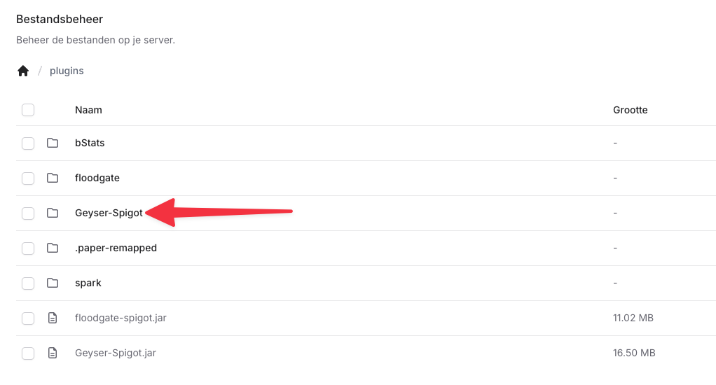 pluginsen daarna de mapGeyser-Spigot.