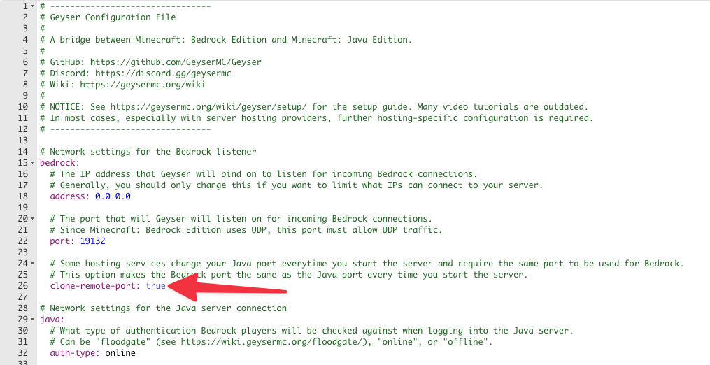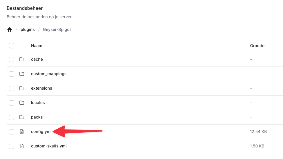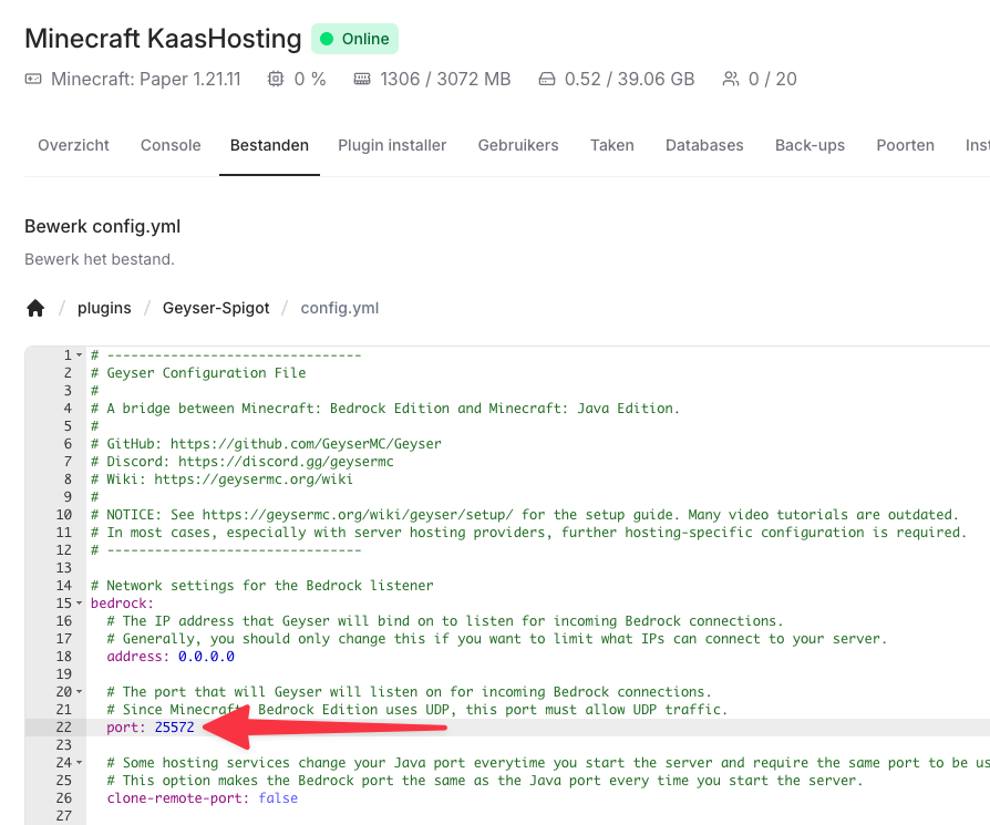 plugins→Geyser-Spigot→config.yml.Zoek de regel