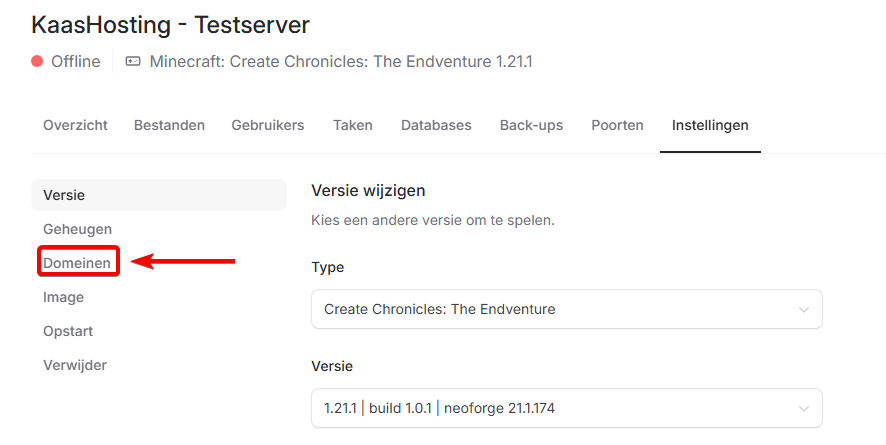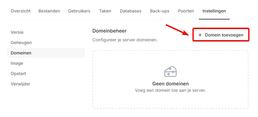 Ga naar het controlepaneel en klik op de server waarvoor je een custom subdomein wil instellen.