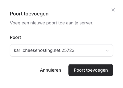 Klik op poort toevoegen om de poort aan je server toe te voegen.
