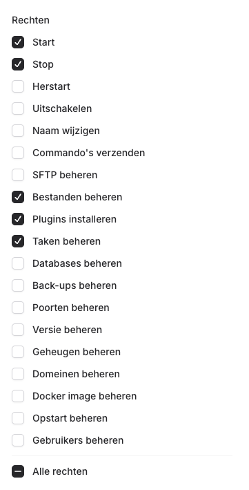 Kies de rechten die je aan de gebruiker wil geven.