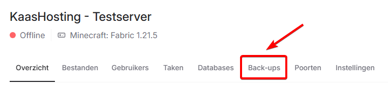 Ga naar het controlepaneel en klik op de server waar je een back-up wil herstellen.