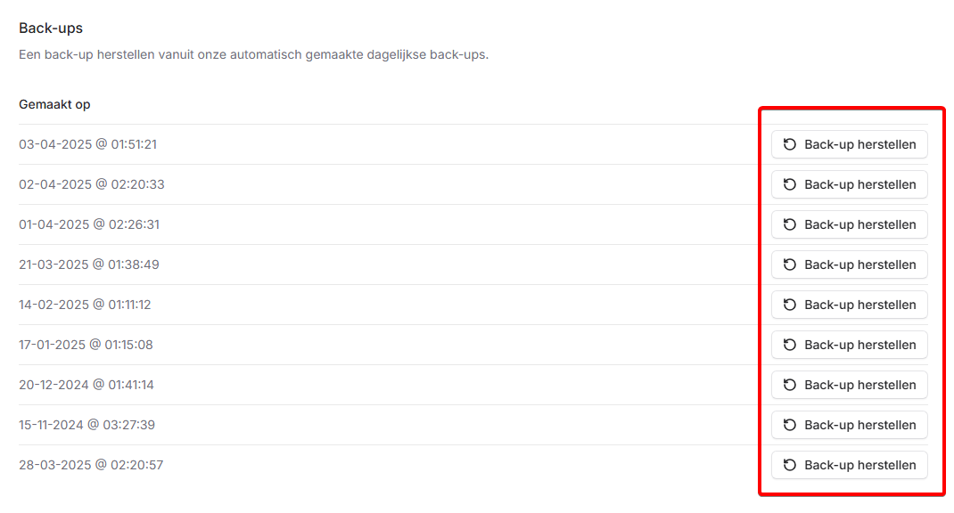 Zoek de gewenste back‑up en klik op back-up herstellen.