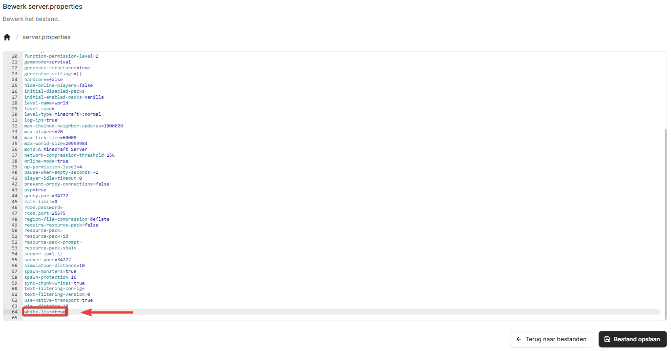 Whitelist inschakelen via server.properties
