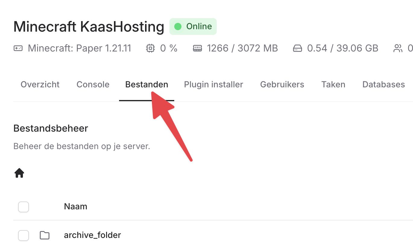 Klik in het menu op Gameservers en daarna op je Minecraft server.