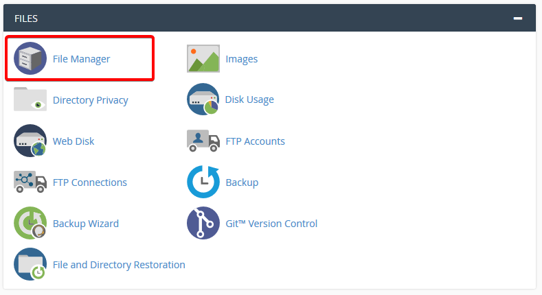 Ga terug naar het cPanel overzicht en klik onder Files op File Manager.