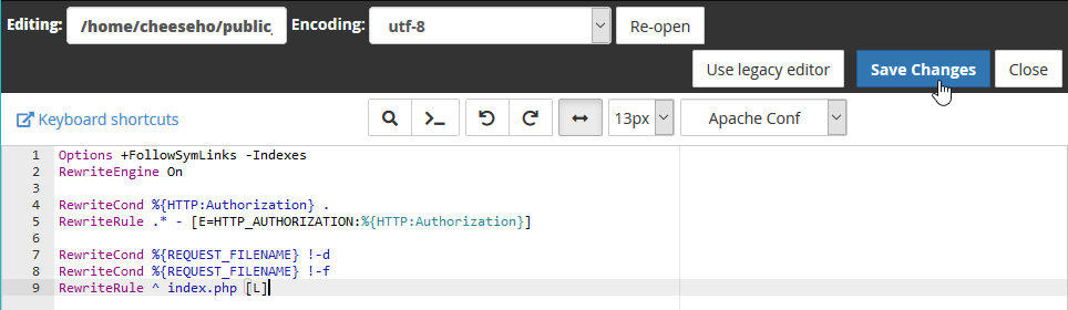 </IfModule>Klik op Save Changes.