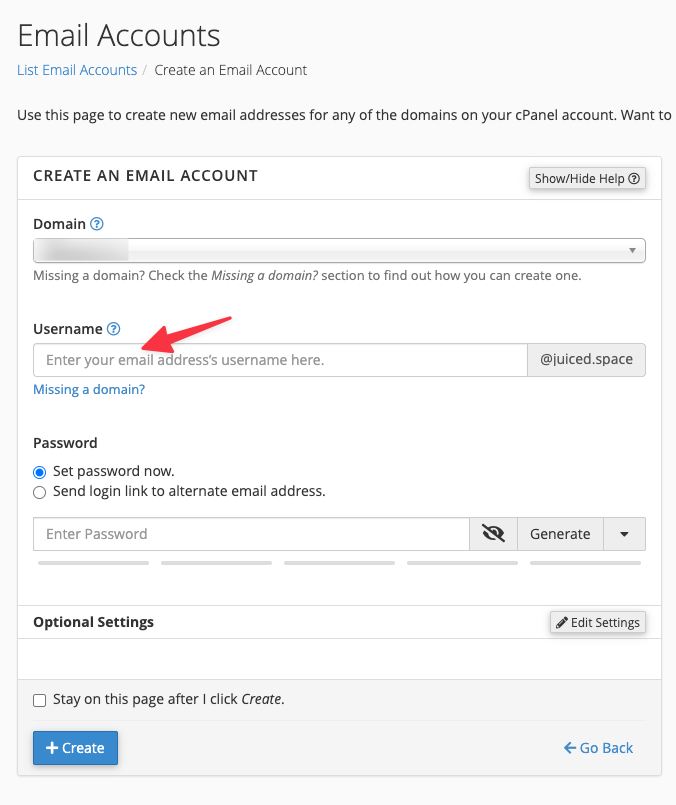 Vul bij Username het gedeelte in dat voor de @ komt (bijvoorbeeld